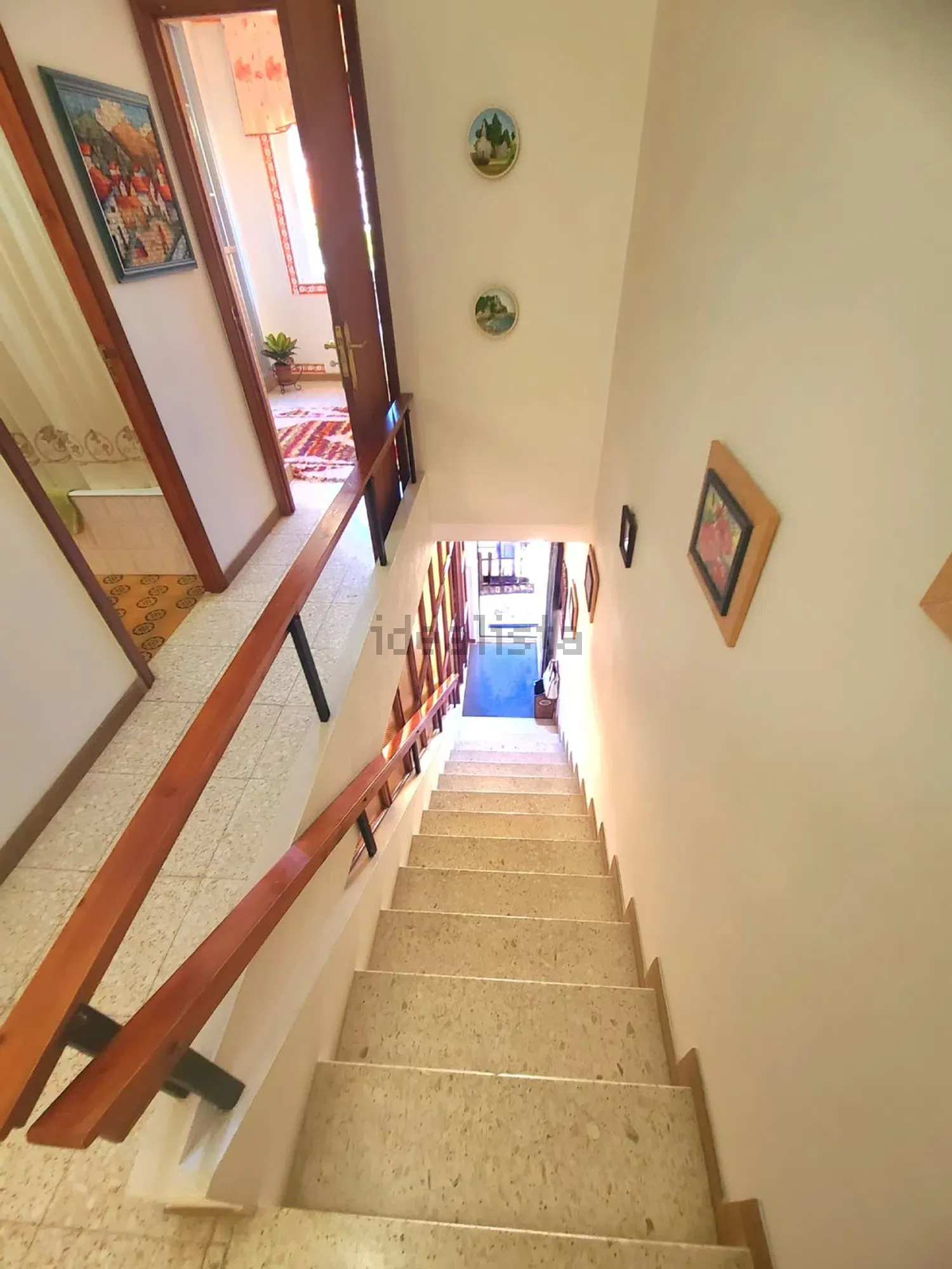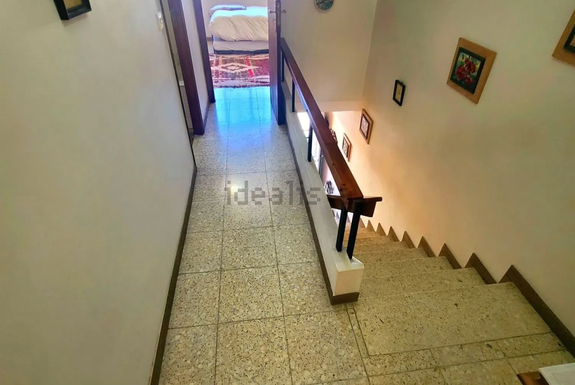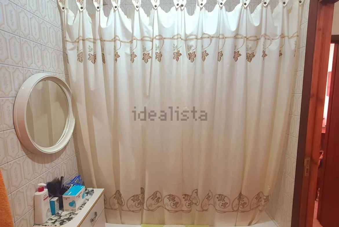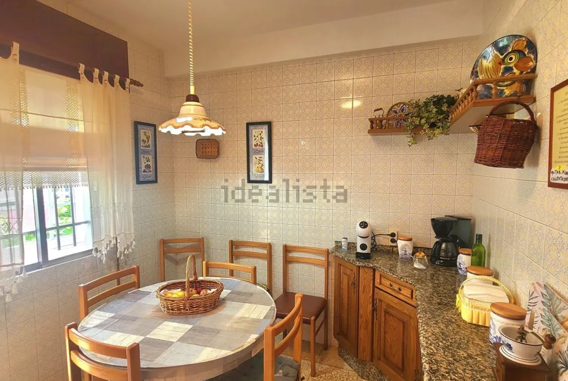 Su distribución pasa a ser la siguiente; entrando a la derecha tenemos un salón con una estufa de pellet para en invierno poder dar calor a la casa, seguido de un baño con wc, pileta y plato de ducha con mampara, al fondo nos encontramos con la cocina dotada de todos los electrodomésticos y salida a un balcón, siendo la zona de tendedero, de orientación sur/oeste. Por las escaleras que tenemos en el pasillo, se accede a la primera planta, donde están los dos dormitorios y un baño con bañera.